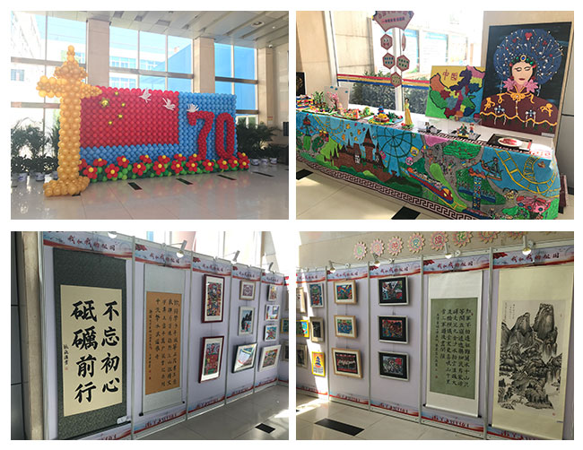 在活动现场,与会嘉宾们参观了石景山区第33届“四联展”中的优秀作品。全区中小幼师生用绘画、书法、篆刻、工艺等方式进行创作,表达了教育系统师生对伟大祖国的生日祝福。