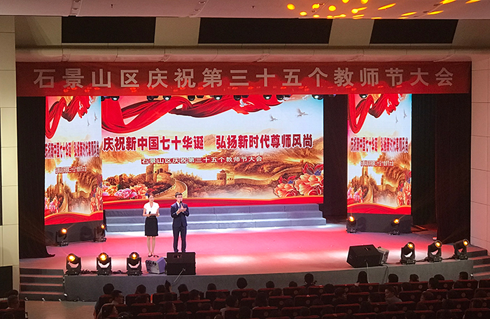 9月10日,以“庆祝新中国七十华诞 弘扬新时代尊师风尚”为主题的石景山区庆祝第35个教师节暨表彰大会在北方工业大学礼堂举行。石景山区各委办局负责人,石景山区教育系统各单位负责人、优秀教育工作者、援疆援藏教师代表、区属教师、学生代表共700余人参加了大会。