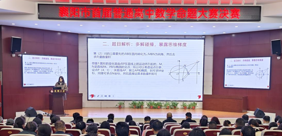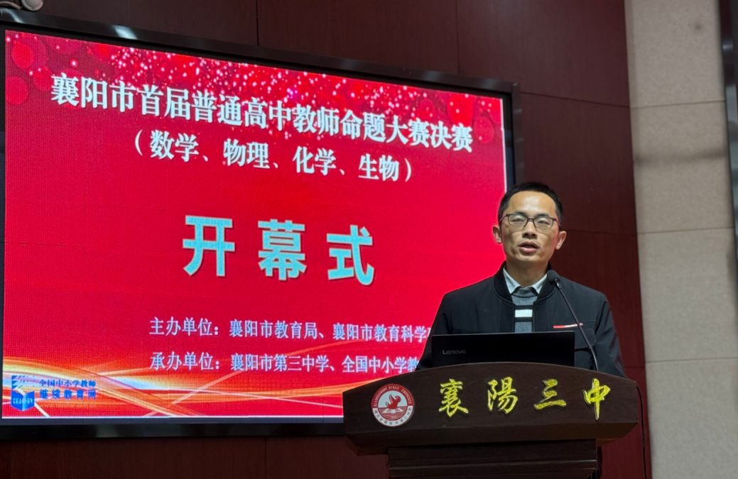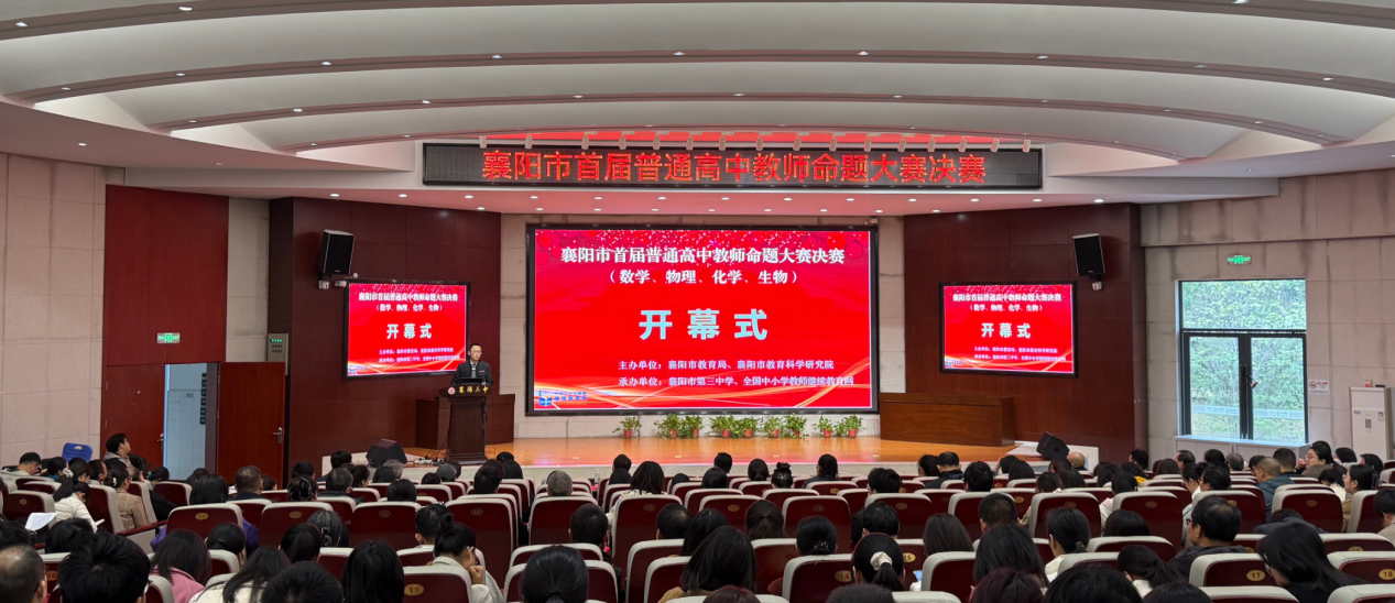 2025年10月24日,由襄阳市教育科学研究院主办,襄阳市第三中学和全国中小学教师继续教育网共同承办的襄阳市首届普通高中教师命题大赛决赛(理科场)在襄阳市第三中学圆满落幕。经过前期初赛复赛的层层筛选,高中数学、物理、化学、生物每个学科各20个命题团队脱颖而出,晋级本次决赛。除参赛团队外,还有200余名教师到现场观摩学习,共赴这场兼具学术深度与实践价值的教育盛会。