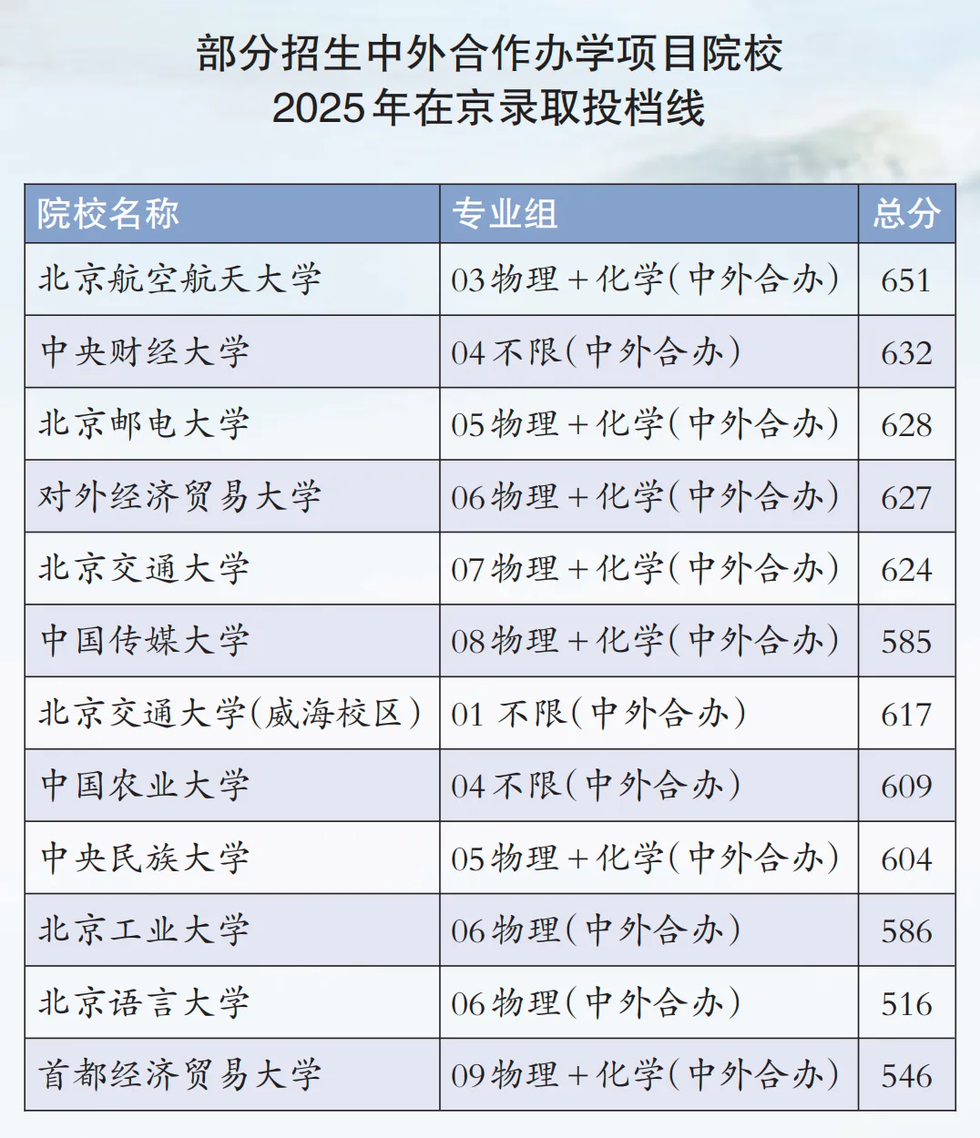 “中外合作办学项目”是指中外合作办学双方不设立专门的教育机构,而是直接在某个大学的某一学科或某个专业直接开展合作。例如,北京邮电大学与英国伦敦玛丽女王大学于2004年合作设立电信工程及管理、电子商务及法律学士学位联合培养项目,后于2011年增设物联网工程学士学位联合培养项目;北京林业大学与加拿大不列颠哥伦比亚大学合办的生物技术、木材科学与工程专业。高考分数没有达到目标院校,但又非常向往该所学校的考生可以选择报考中外合作办学项目,这样考生既可以在目标院校就读,又可以享受到国际教育资源,对未来出国深造也有帮助。