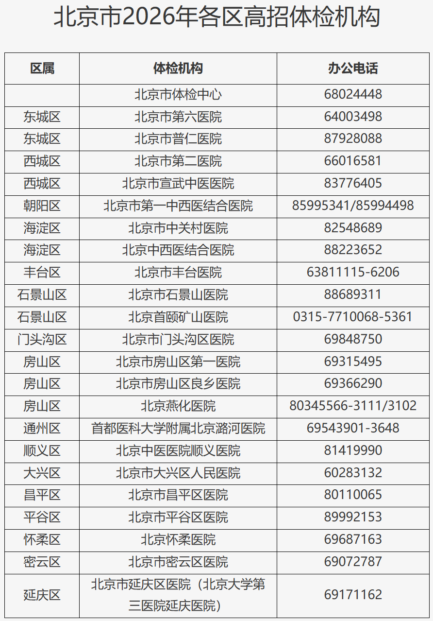 附件:北京市2026年各区高招体检机构