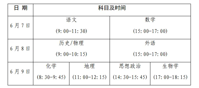 全国统考和选择性考试于6月7、8、9日举行。