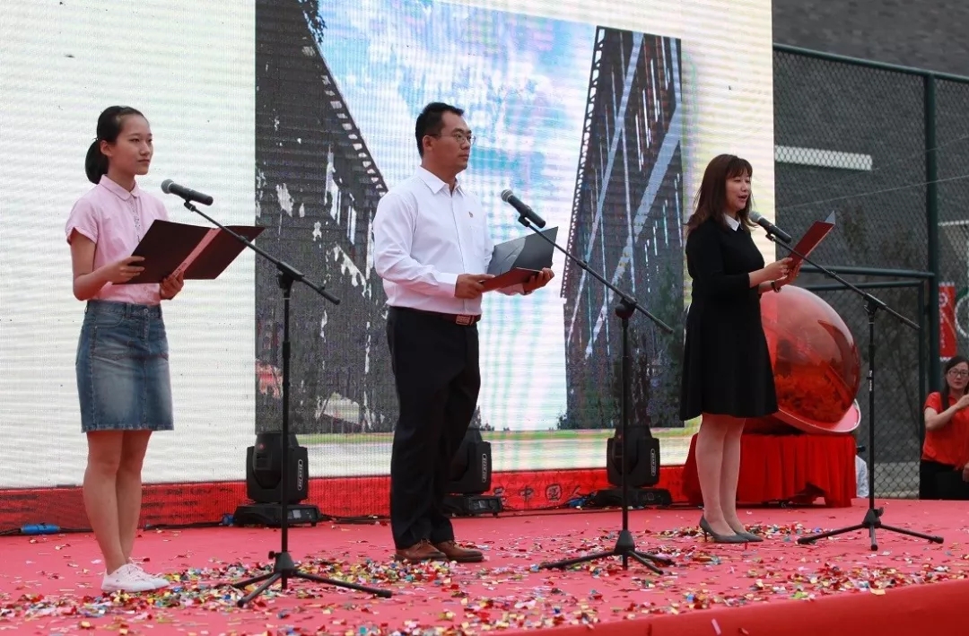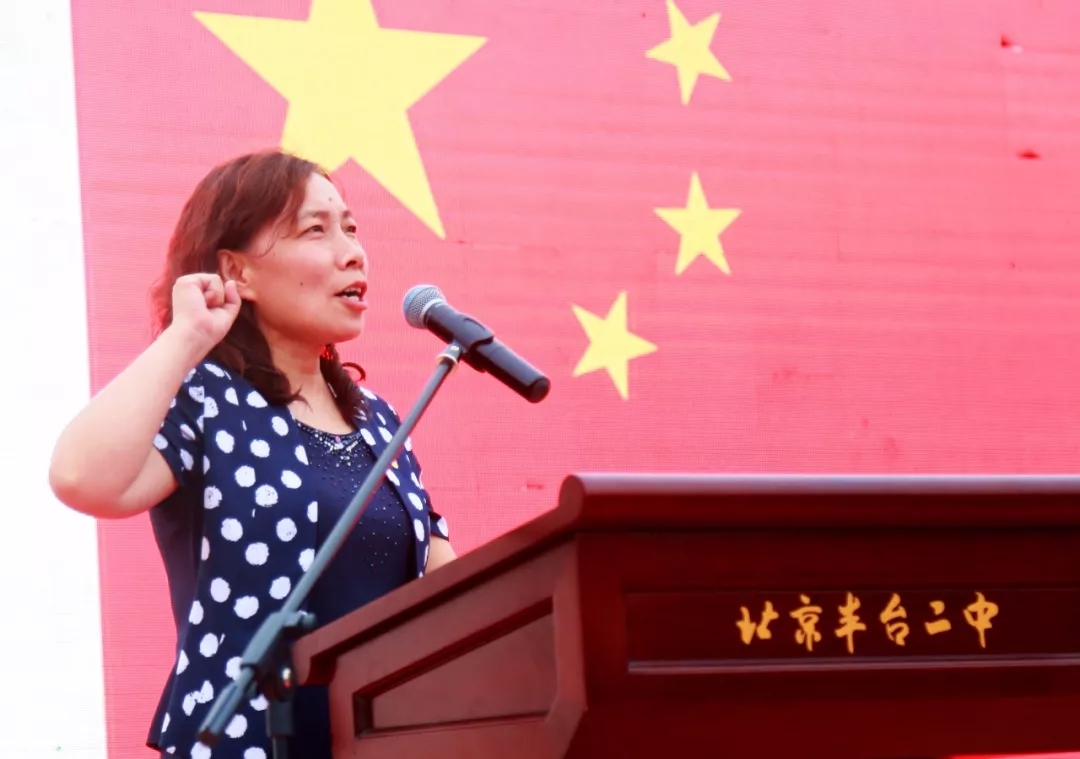 北京丰台二中党委焦素琴书记带领教育集团全体教师庄严宣誓,发自肺腑的洪亮声音表达了全体教师对教育事业的无比忠诚和对学校发展的蓬勃信心。