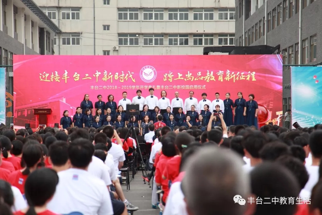 北京丰台二中合唱队唱响《走进新时代》。新时代、新学期、新起点,北京丰台二中师生将在新建的校园内创造新的教育奇迹。