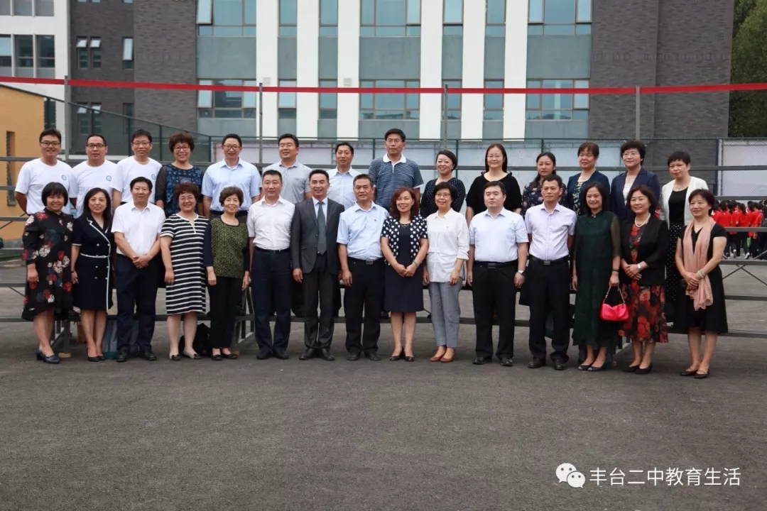 丰台街道办事处工委李广民书记、丰台区教工委薛红书记、丰台区教委张洋主任、丰台区政府教育督导室刘建宾主任、丰台街道办事处单洁副主任、北京直属保障大队王新桥副大队长、62301部队政治部王洪流副主任、军委后勤保障部后勤采购服务中心唐益兵处长莅临会场,来自丰台教委两委一室、教委直属单位、兄弟学校、友邻单位的领导和北京丰台二中的老领导、老教师、校友代表也应邀参会。