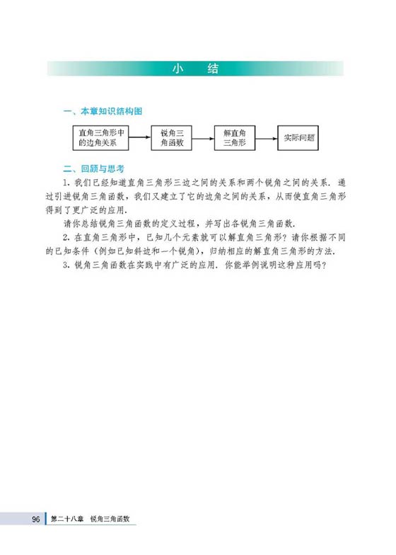 九年级下册数学第二十八章 小结