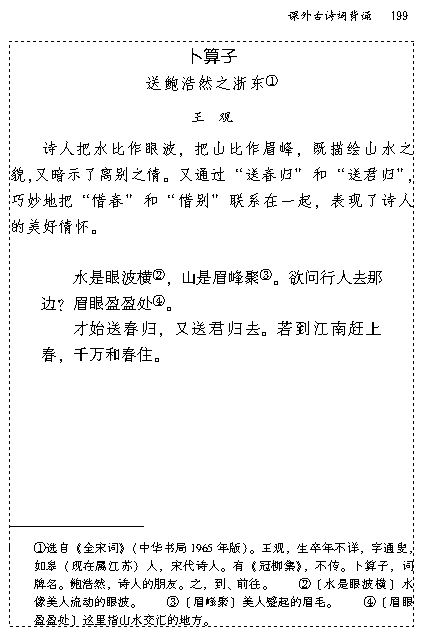 九年级下册语文 课外古诗词背诵 卜算子——送鲍浩然之浙东