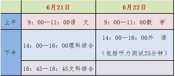 考试科目为6科,包括语文、数学、外语、理科综合(包括物理、化学两门学科)、文科综合(包括思想品德、历史两门学科)、体育,总分630分。