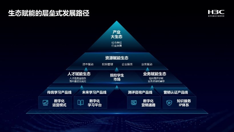 经过多年的实践积累,新华三创新性推出了生态赋能产品体系,包括传统学习、营销认证、测评咨询、未来学习等四大产品线,作为全面且完善的赋能学习产品基石,助推产业大生态发展。其中众多数智化应用场景更是对新华三生态业务赋能给予了强有力的支撑,其中结合新华三产品技术的专业认证体系,全程陪伴从业者能力进阶和岗位实践;直击生态企业业务痛点的轻咨询产品,不断推动生态企业战略转型和业务升级;同时,VR技术、AIGC、SaaS服务等前沿技术,也被逐渐应用于新华三生态赋能业务中,不断探索数字化时代背景下业务赋能的新路径。更多数智技术的多元化应用,正全面推动新华三生态业务的创新增长。