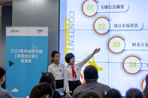 2024年5月25日,在毕马威中国对项目的支持下,由JA中国组织和发起的“我是创业家”成果展也拉开了序幕。在经历一学年的课程学习后,同学们也迎来了期待已久的一次挑战自己的机会,在参与成果展的过程中,既是对学生学习与实践的激励,也是对他们的创新精神和实践能力的全面展示。